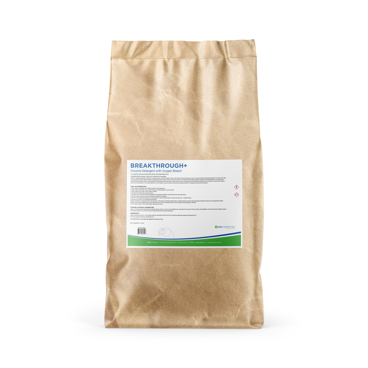 With an improved, proprietary formulation, Breakthrough+ brings detergency to new heights. With a unique combination of enzymes, detergent agents, and safe oxygen bleaching, Breakthrough+ quickly and completely removes protein and oily residues while remaining effective in soft and hard water conditions.
