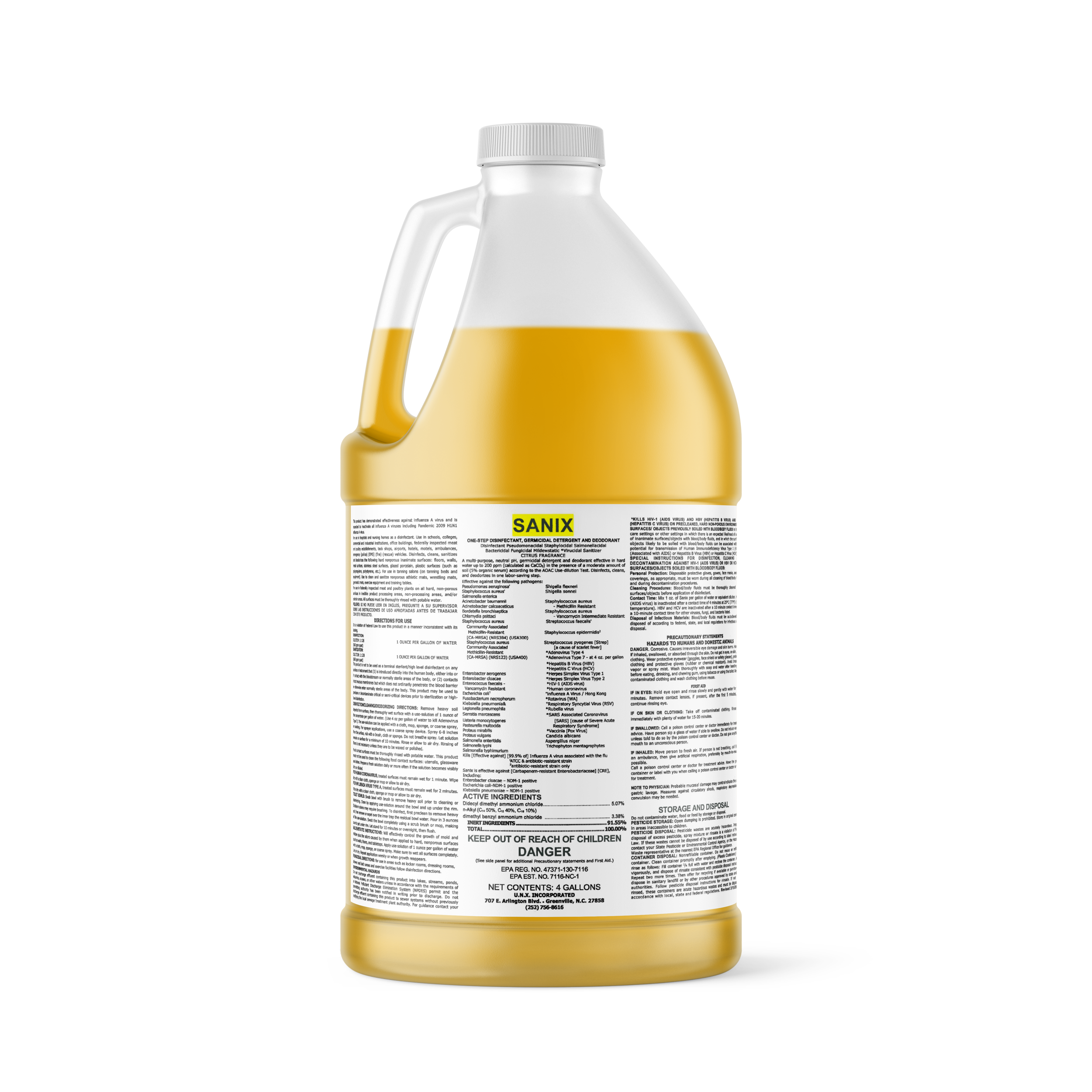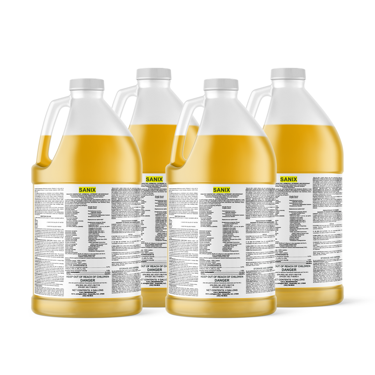 As an EPA Registered disinfectant, detergent & deodorant, Sanix is a one-step neutral cleaner and disinfectant that features kill claims against a wide spectrum of viruses and pathogens including the Human Coronavirus, Influenza A, Staph & MRSA. Recommended for use on floors, walls, partitions, fixtures and other hard non-porous surfaces.